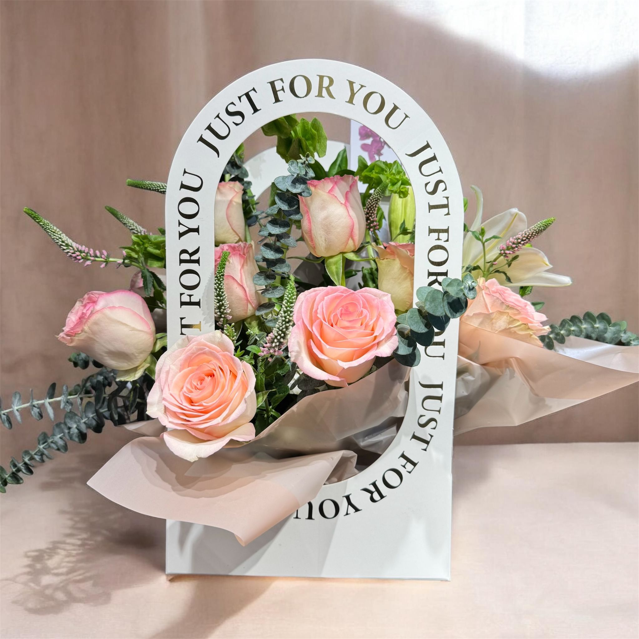 El Bolso Floral Just For You es un elegante arreglo de flores frescas presentado en una sofisticada base tipo bolso decorativo, ideal para regalar en cumpleaños, aniversarios, agradecimientos o cualquier ocasión especial.
